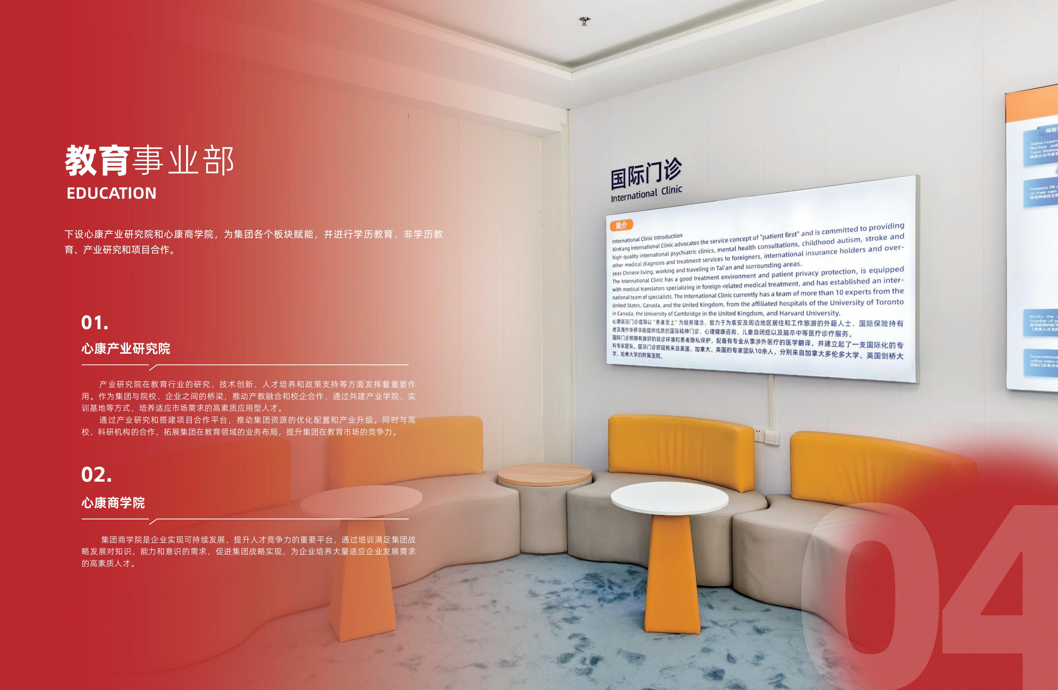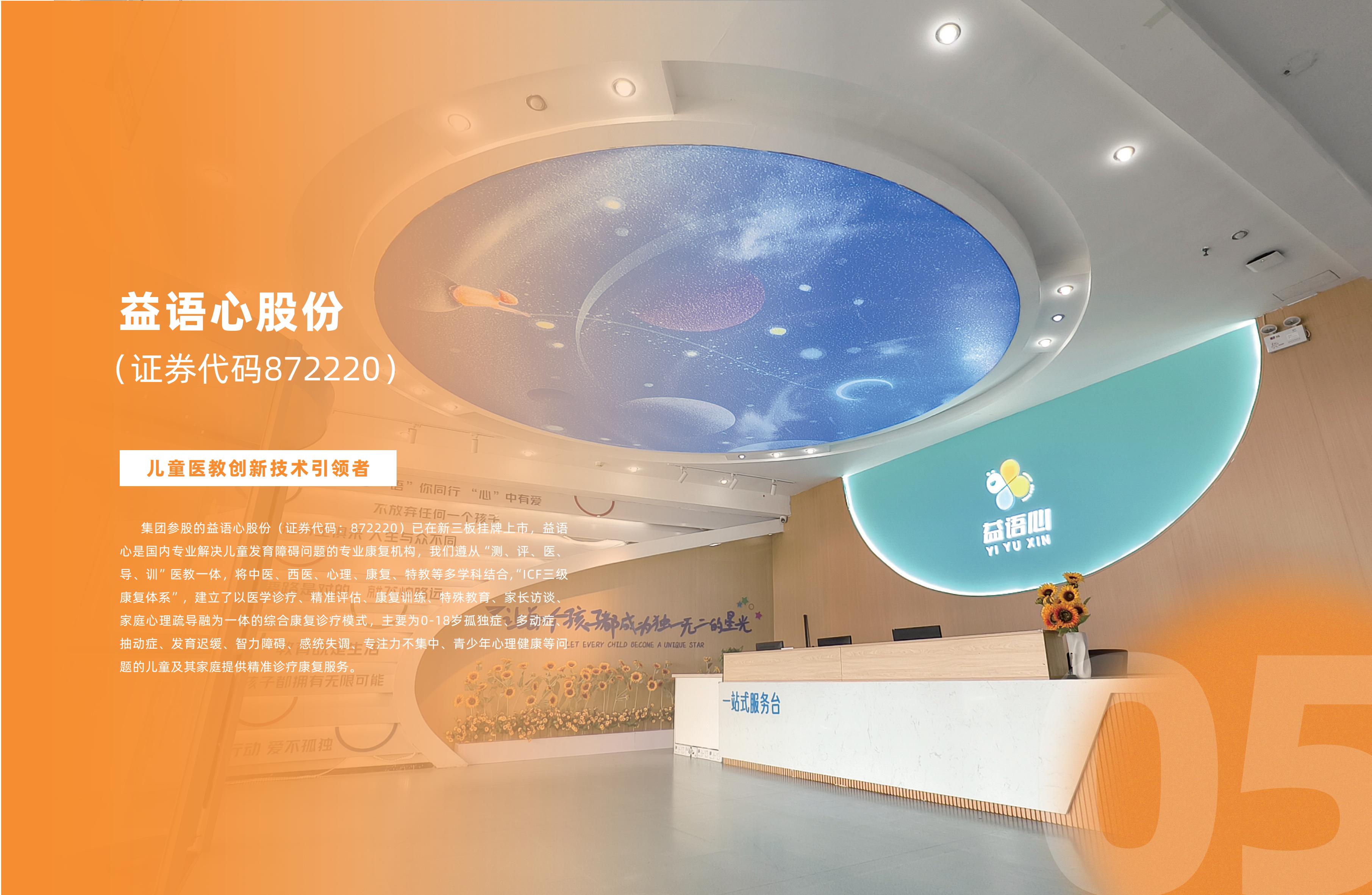 J9旗舰厅控股集團有限公司(簡稱“J9旗舰厅控股集團”)始建于2017年11月,集團總部位于山東泰安,總建筑面積七萬余平,現(xiàn)有員工700余人,是一家集醫(yī)、康、養(yǎng)、產(chǎn)、學(xué)、研于一體的綜合性健康產(chǎn)業(yè)集團公司。集團下設(shè)成康、醫(yī)康養(yǎng)、醫(yī)療科技、教育等事業(yè)部,通過“立足本土、放眼全球”的戰(zhàn)略布局,構(gòu)建起多維度的心理康復(fù)服務(wù)體系。 集團參股的益語心股份(證券代碼:872220)已在新三板掛牌上市,益語心是國內(nèi)專業(yè)解決兒童發(fā)育障礙問題的專業(yè)康復(fù)機構(gòu),我們遵從“測、評、醫(yī)、導(dǎo)、訓(xùn)”醫(yī)教一體,將中醫(yī)、西醫(yī)、心理、康復(fù)、特教等多學(xué)科結(jié)合,“ICF三級康復(fù)體系”,建立了以醫(yī)學(xué)診療、精準評估、康復(fù)訓(xùn)練、特殊教育、家長訪談、家庭心理疏導(dǎo)融為一體的綜合康復(fù)診療模式,主要為0-18歲孤獨癥、多動癥、抽動癥、發(fā)育遲緩、智力障礙、感統(tǒng)失調(diào)、專注力不集中、青少年心理健康等問題的兒童及其家庭提供精準診療康復(fù)服務(wù)。目前業(yè)務(wù)已經(jīng)拓展到浙江、江蘇、廣東等地。